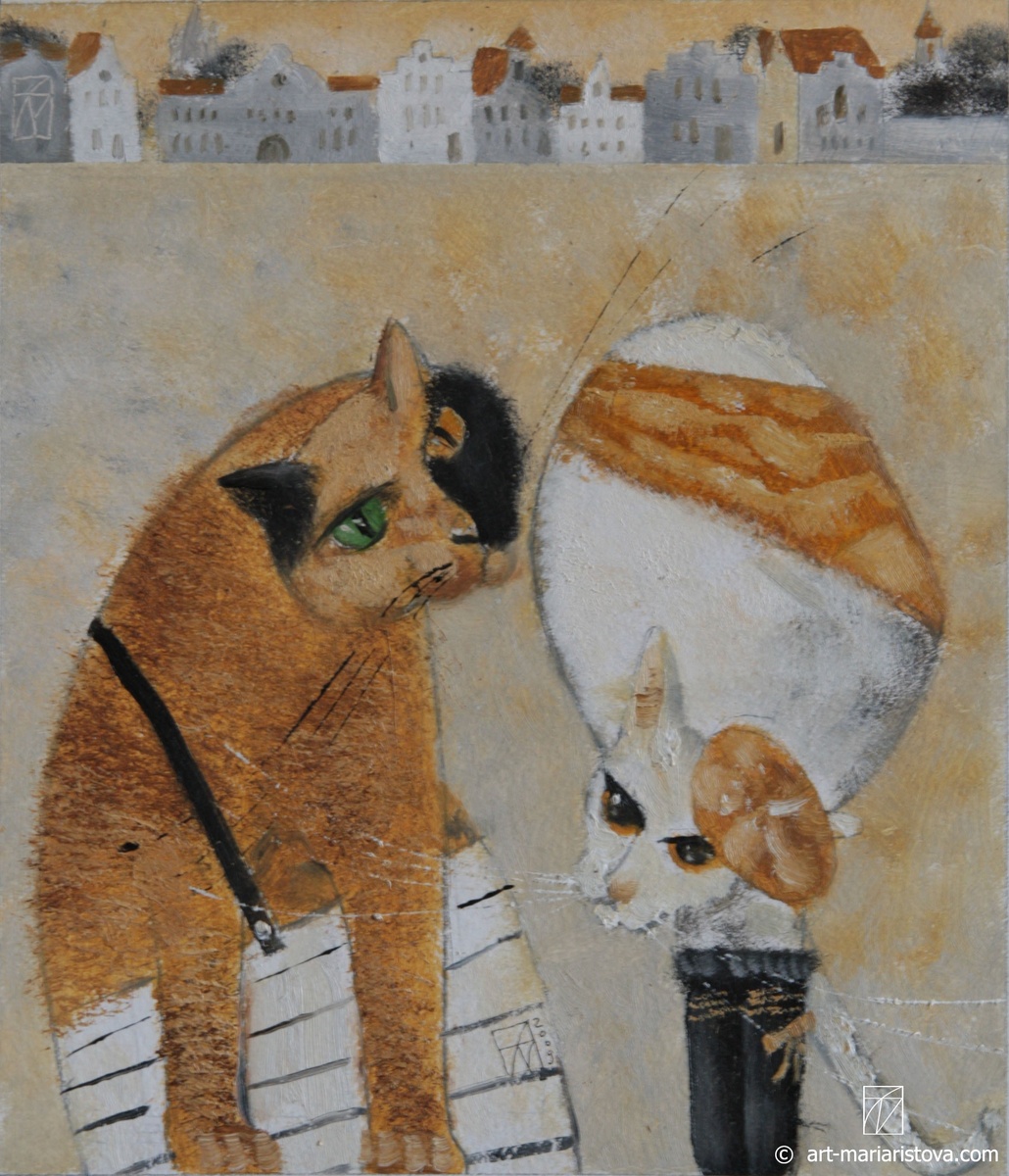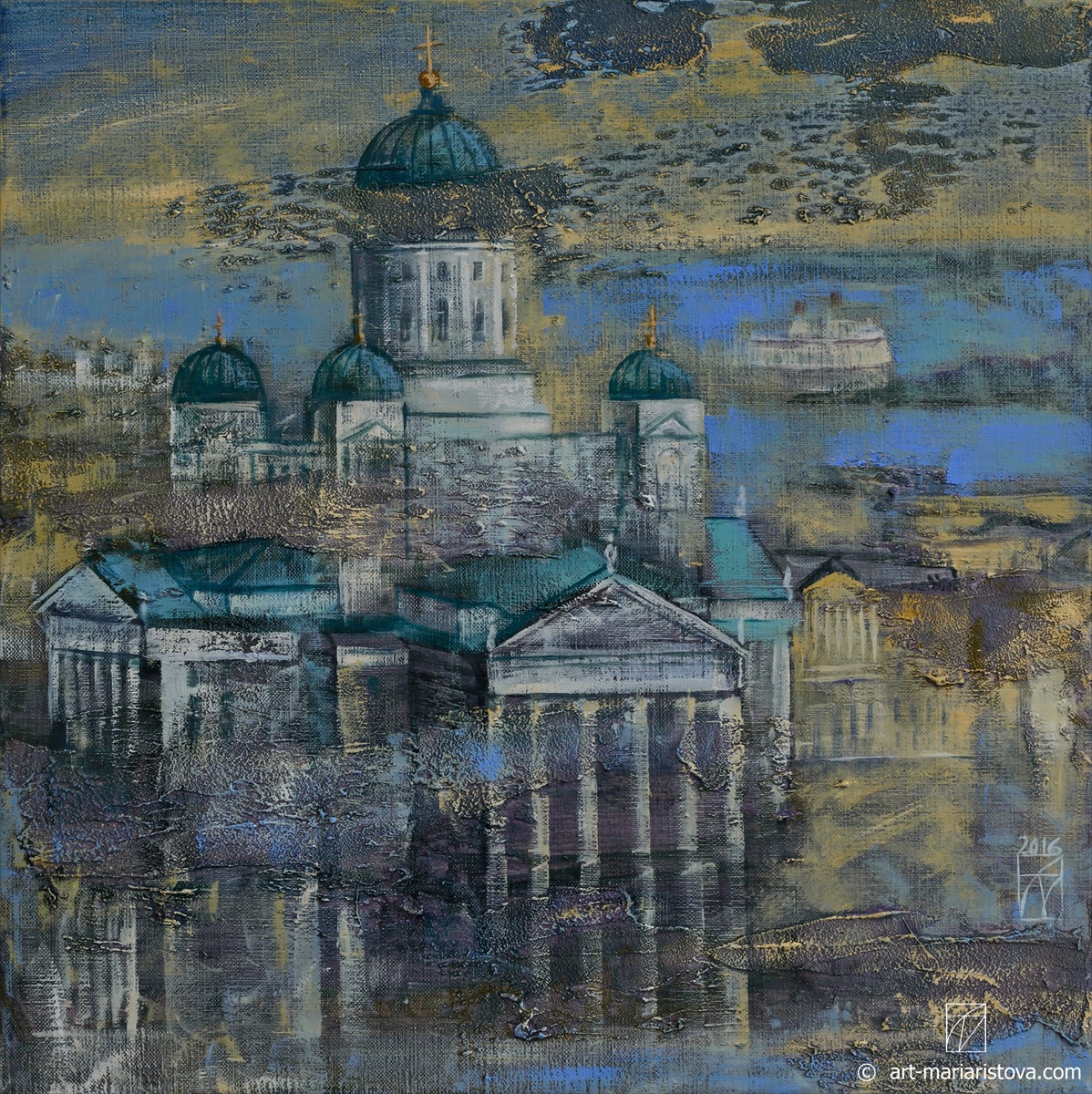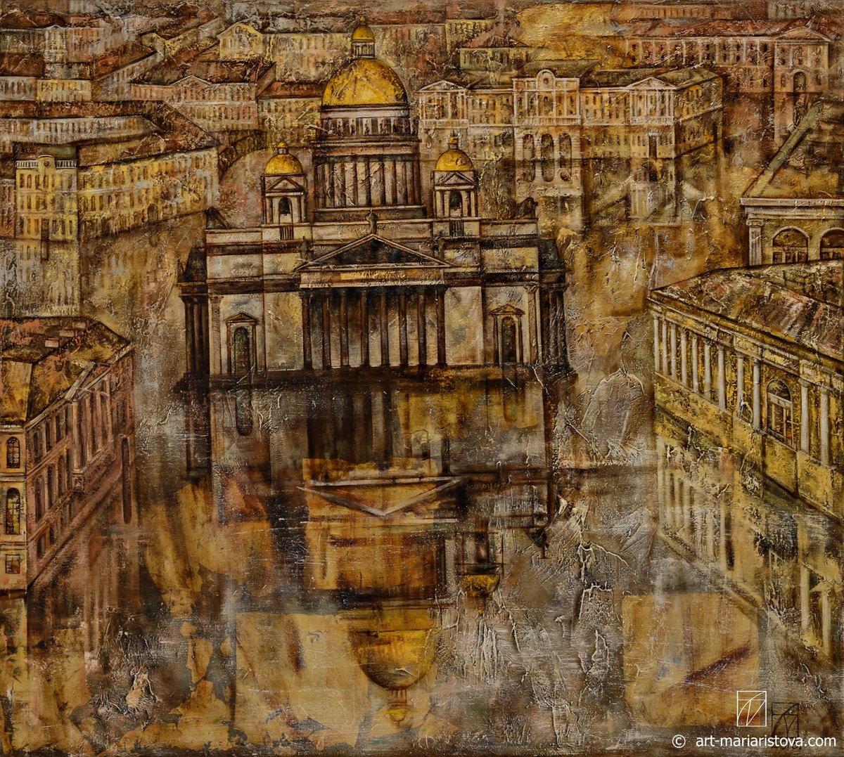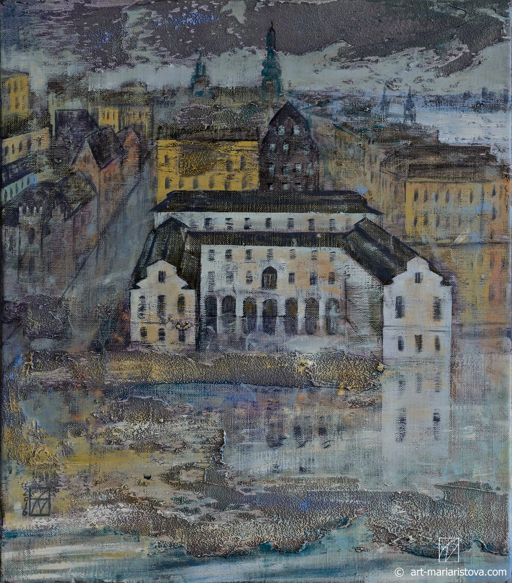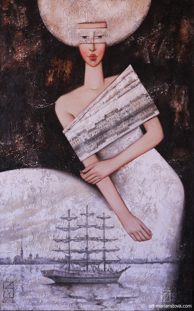 Сегодня я хочу представить Вам работы очень своеобразной художницы из Санкт-Петербурга Марии Аристовой. В ее творчестве значительное место занимают города, неотъемлемо связанные с водной стихией и, конечно, это, в первую очередь, Санкт-Петербург и Венеция. А несколько ее работ посвящены Выборгу, Хельсинки и Стокгольму. Вместе с тем, рискну предположить, что на эти городские мотивы накладывается более важный для художницы образ. Речь идет об образе тех фигур, которые выступают в качестве хранителей этих городов, сберегающих не только достопримечательности, ценности и архитектурно-природные ландшафты этих мест, но и традиции, культуру и все то, что составляет их душу …