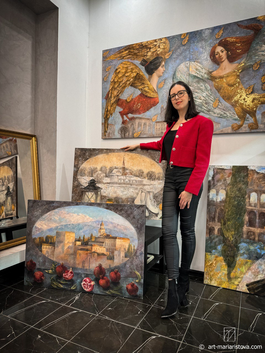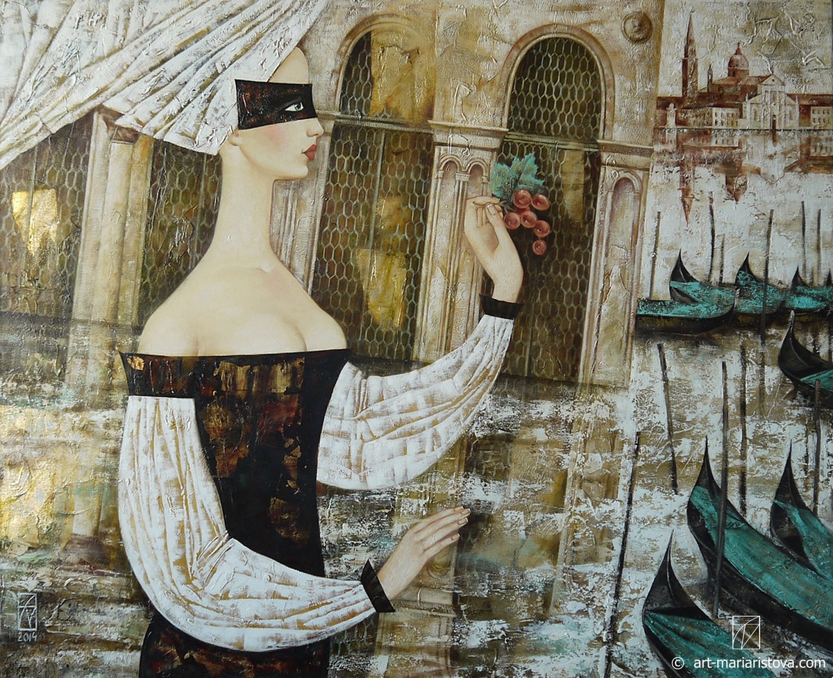 И о биографии художницы. Мария Аристова родилась в 1984г. в семье художников и музыкантов. В 5 лет поступила в студию при государственном Эрмитаже, где её работы украшали обложки календарей и участвовали в детских музейных выставках. В 11 лет - участие в проекте, по приглашению известного бельгийского художника Ван де Пэре. Обучение в лицее при Академии Художеств, театральное отделение института (педагоги: И.Г. Уралов и Э.С. Кочергин). И уже с 3 курса, помимо обучения, участие во всевозможных выставках. В 2010г. закончила Академию Художеств им. И.Е. Репина (Санкт – Петербург). Является членом Союза Художников России и Санкт-Петербурга. На ее счету 6 персональных выставок в России, Италии и Швеции и участие более чем в 70 Российских и международных выставках и арт-проектах. В настоящее время проводит мастер-классы по живописи в Санкт-Петербурге и странах Европы, создает инсталляции в музее Анны Ахматовой в Фонтанном Доме. Картины находятся в частных коллекциях Италии, Англии, Бельгии, Германии, Австралии, Швеции, Франции, Китая (в частной коллекции Харбинского художественного музея российской живописи и др.) и России (в т.ч. музее им. Дягилева).
