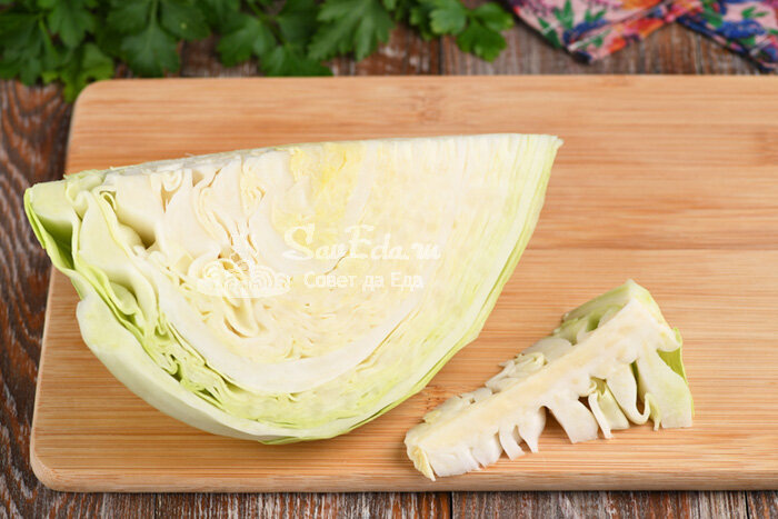 Срезаем у четвертинки капусты кочерыжку.