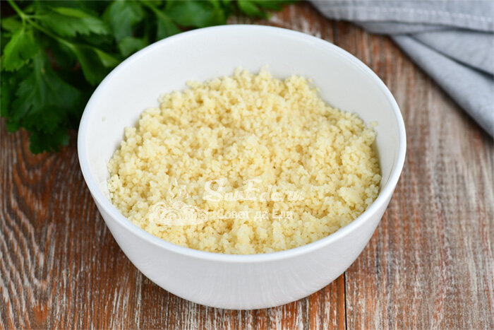 Кускус стал мягким, перемешиваем его. Крупа получается рассыпчатая.