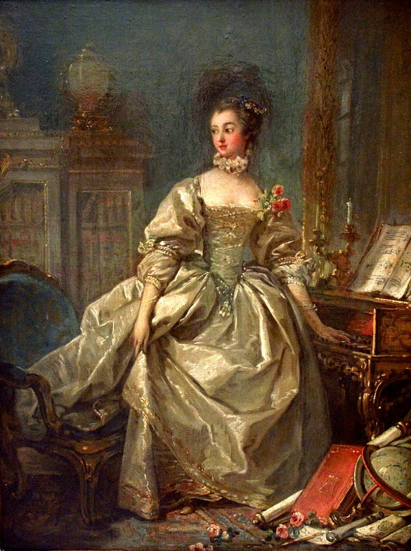 Мадам де Помпадур у клавикордов, портрет работы Франсуа Буше, 1750 г., Лувр (Париж).