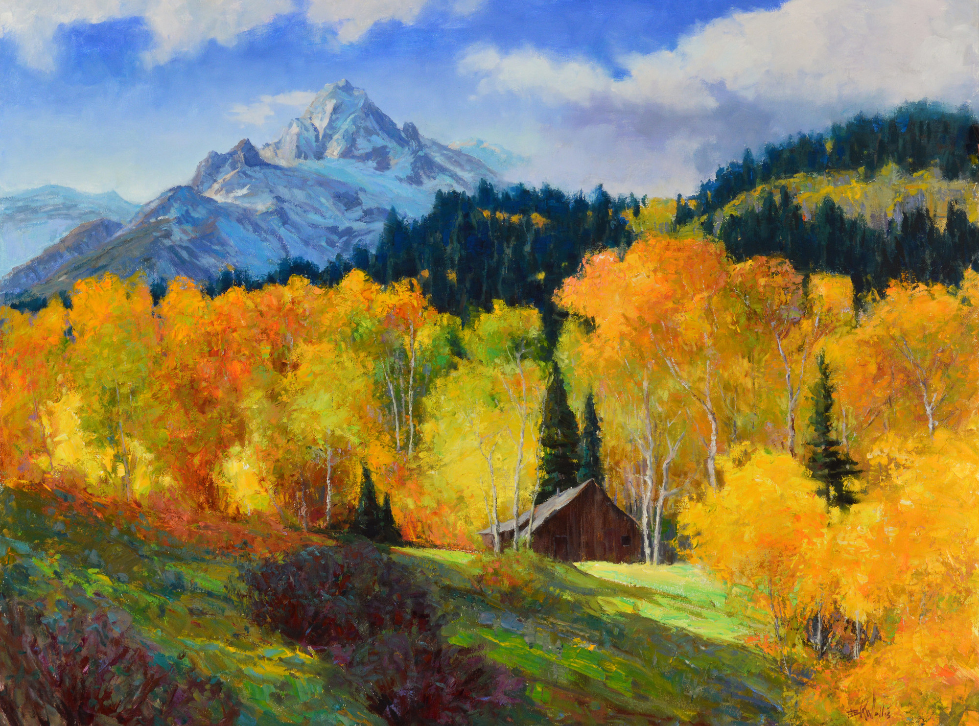 КАРТИНА ХУДОЖНИКА - ИМПРЕССИОНИСТА ЭРИКА К. УОЛЛИСА / Eric K.Wallis / УТРО У ГОРЫ МОРАН