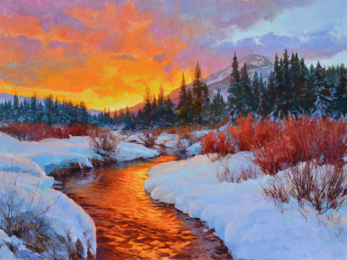 КАРТИНА ХУДОЖНИКА - ИМПРЕССИОНИСТА ЭРИКА К. УОЛЛИСА / Eric K.Wallis / ЗАКАТ ЗИМОЙ