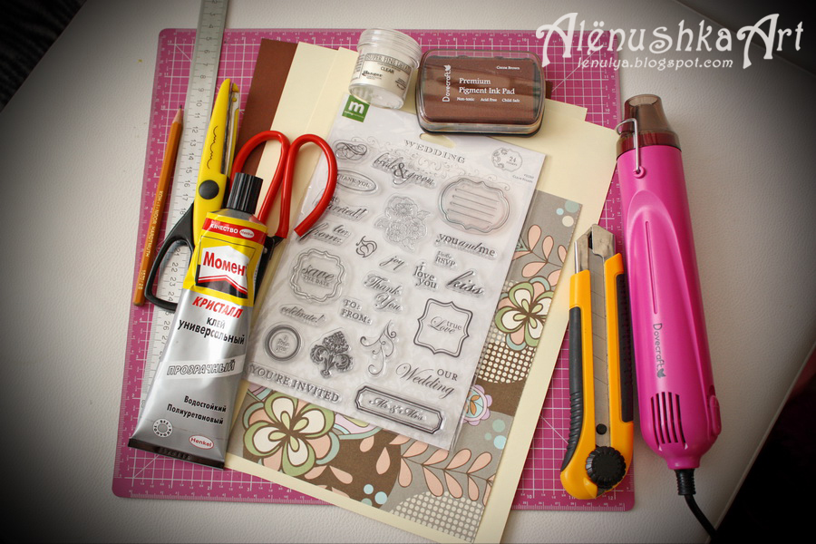 Можно бумагу использовать не для всех прямоугольников. А что-либо выштамповать и заэмбоссить с помощью фена