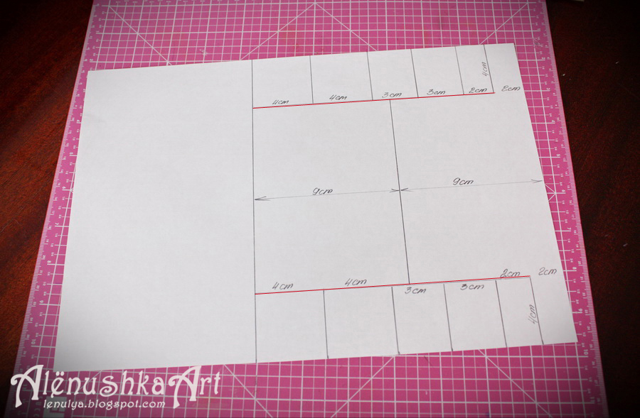Разрезаем по красным линиям и бигуем все остальные линии. Получаем вот такую заготовку: