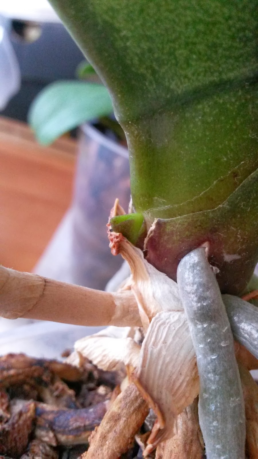 Вот чешуйку от засохшего листа под цветоносом можно легонько отодвинуть.