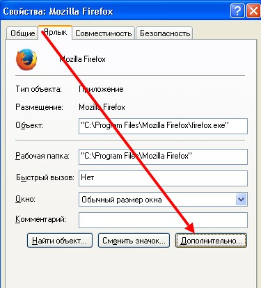 свойствах ярлыка