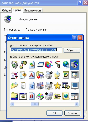 "Сменить значок"-"Обзор".