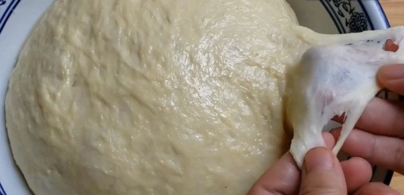 Накройте пищевой плёнкой и отправьте в холодильник на 15 часов. По истечении этого времени тесто будет выглядеть следующим образом: