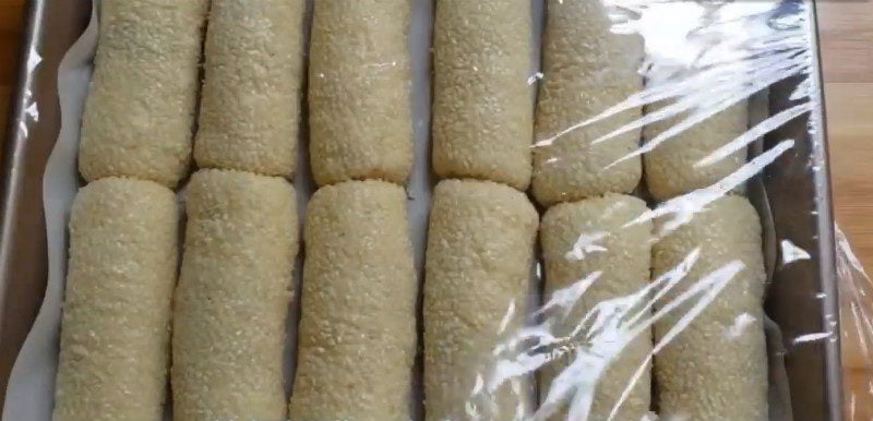 Всего получится 12 заготовок. Обваляйте их, по желанию, в кунжуте.