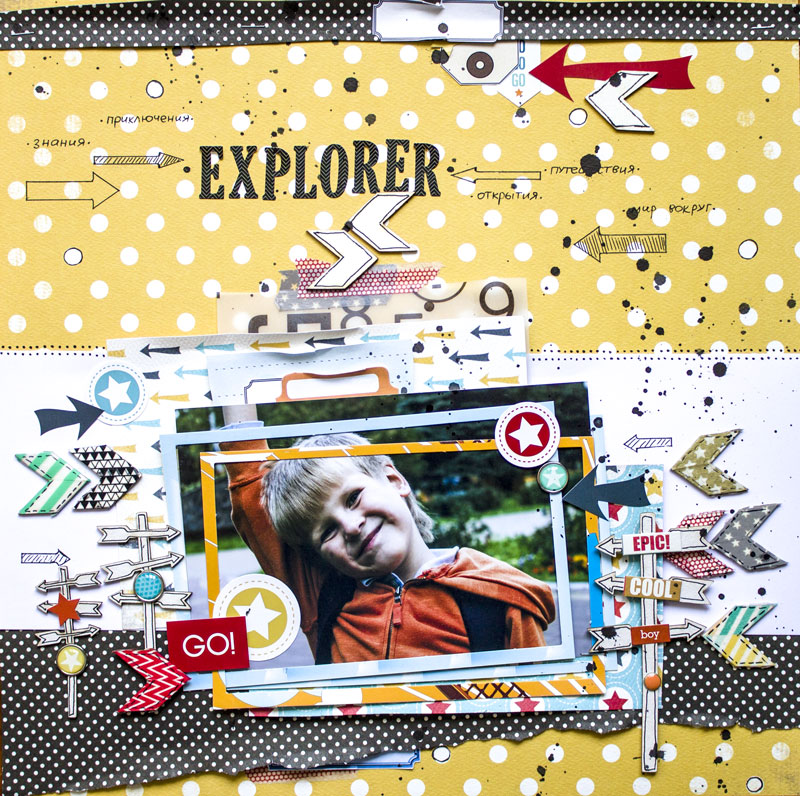 Если американский стиль - это классический стиль скрапбукинга, то значит, что бумага - самый важный материал, ведь мы делаем скрапбукинг, мы вырезаем! И еще следовательно, одними из основных черт "американки" будут - многослойность, объем(рвем, мнем, делаем заломы) вырезанные элементы.