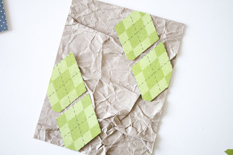 примять края, смять ее полностью, потом расправить и приклеить. Замечательно для такого подойдет крафт-бумага, тетрадные листы в клетку или линейку, калька.