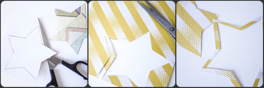 Во-вторых, звезды! Вырезать звезды из скрапбумаги, а потом, слегка отступив от вырезанной части, вырезать полую звезду, рамку-звезду, ну разве не крутяшная штука получается?