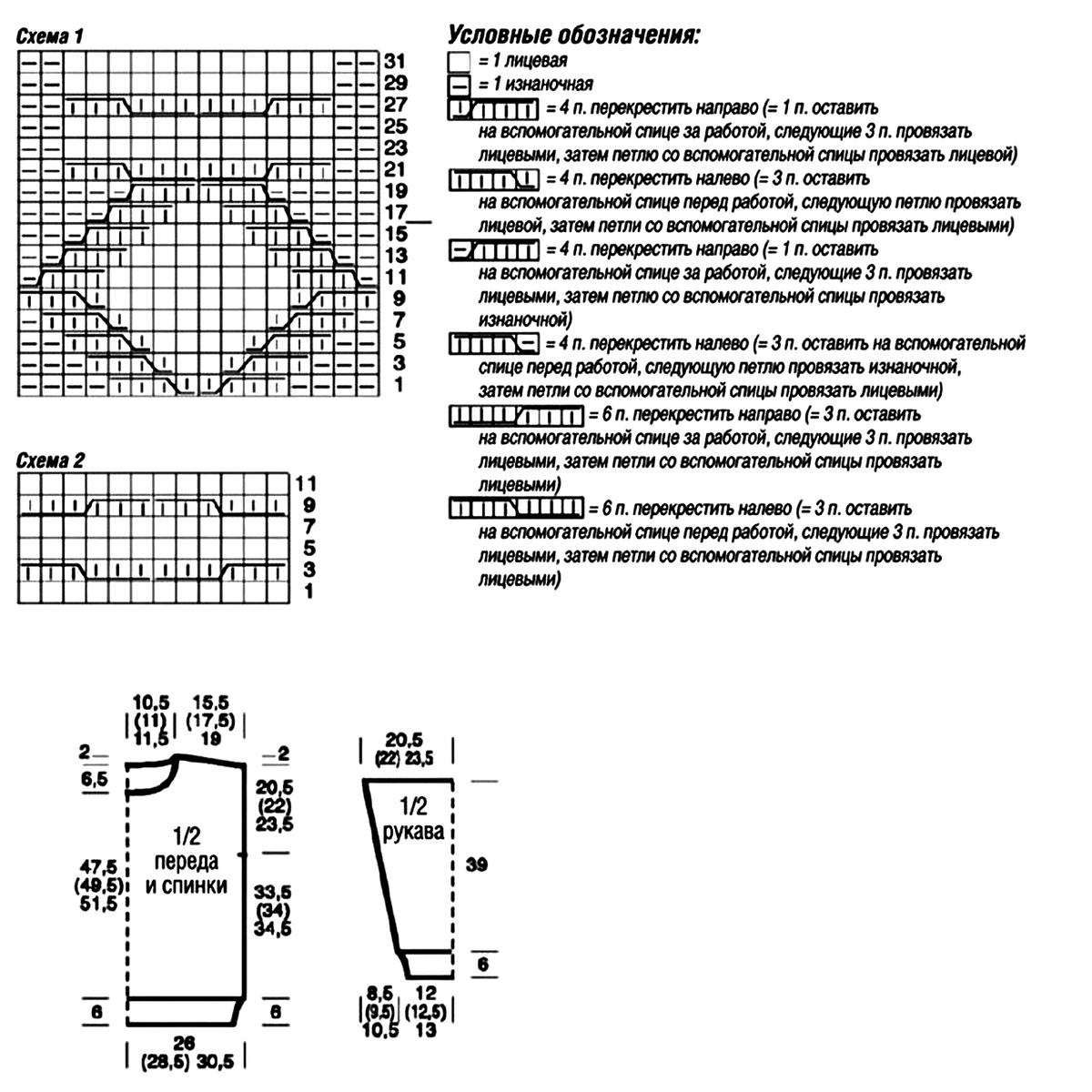 Внимание. Первые 2 (3) 4 прибавления провязывать изнаночной гладью, из следующих 12 прибавок образовать узор «Коса» С и оставшиеся 2 (3) 4 прибавления провязывать изнаночной гладью.