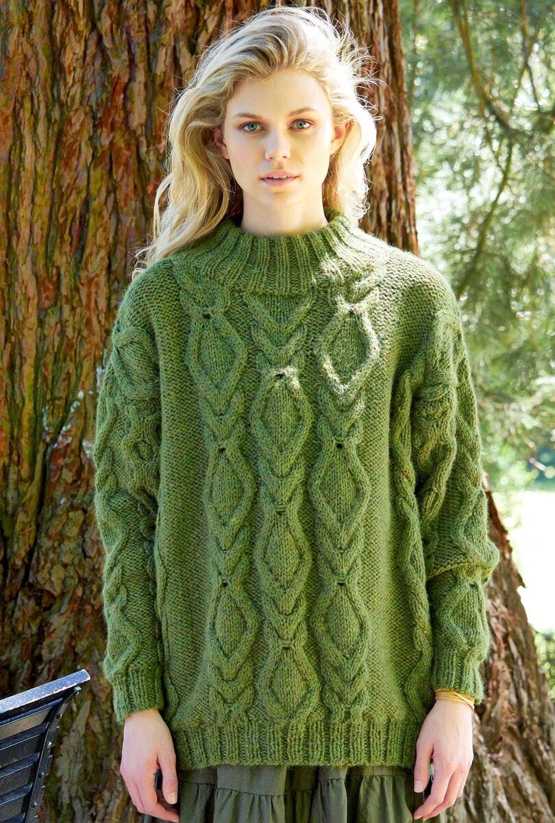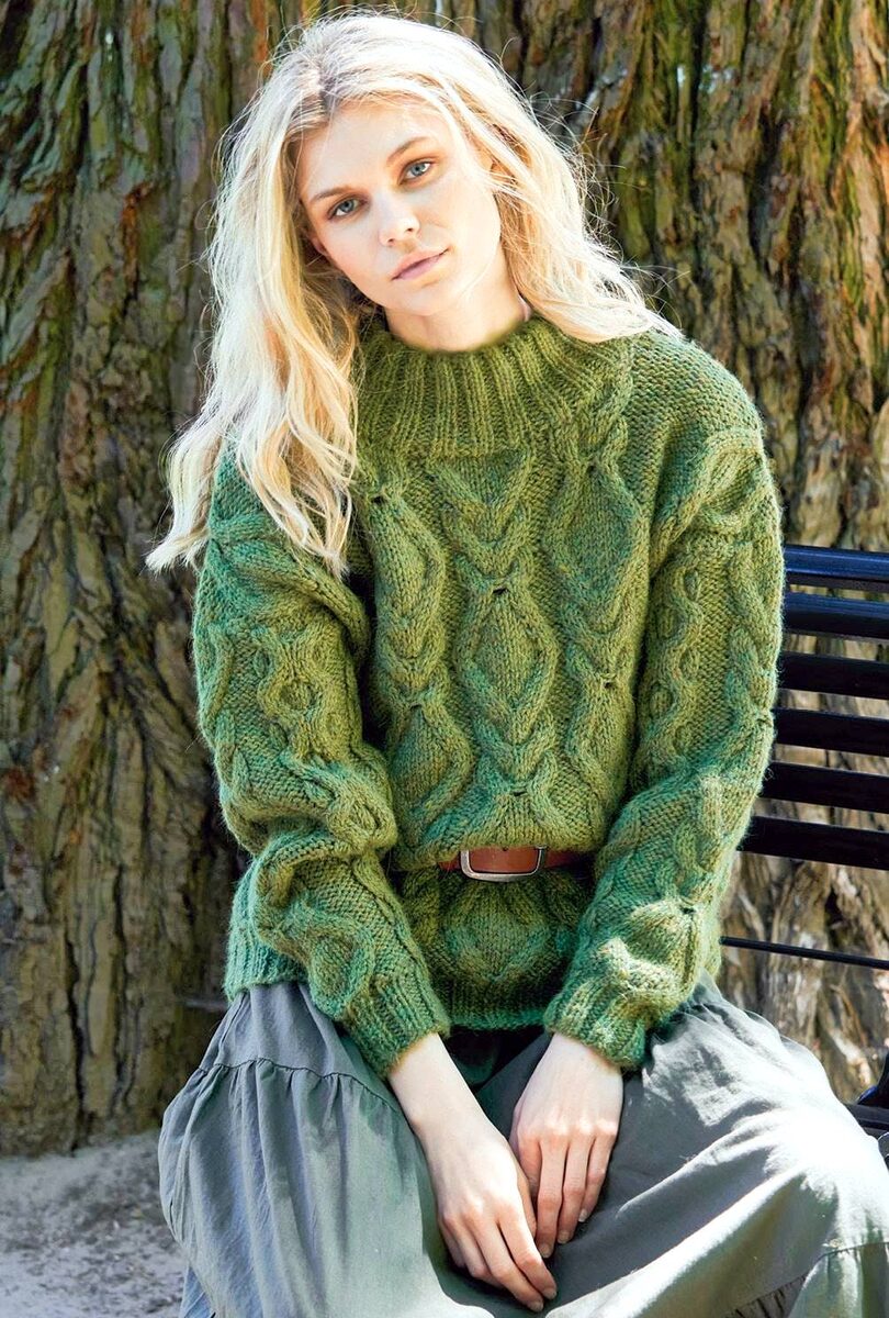 Плотность вязания: последовательность узоров А — 18 п. и 21 р. = 10 х 10 см; последовательность узоров В — 19 п. и 19,5 р. = 10 х 10 см.