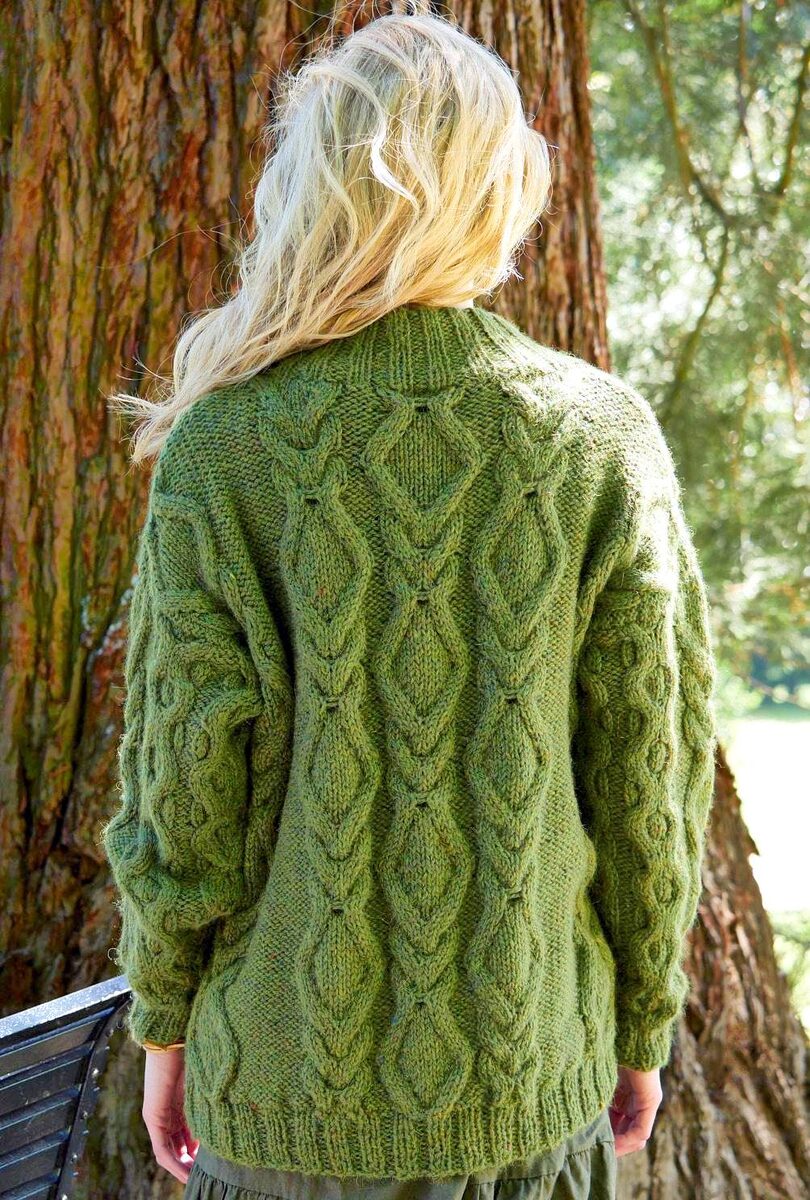 Последовательность узоров А (на 94 (102) 110 петель): кромочная, 0 (1) 2 петли изнаночной гладью, 16 петель узором «Коса» А, 6 (9) 12 петель изнаночной гладью, 16 петель узором «Коса» В, 16 петель узором «Коса» А, 16 петель узором «Коса» В, 6 (9) 12 петель изнаночной гладью, 16 петель узором «Коса» А, 0 (1) 2 петли изнаночной гладью, кромочная.