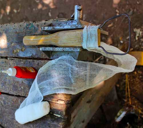 Обматываем бинтом с клеем ПВА (водостойкий) или мягкой (медной) проволокой.
