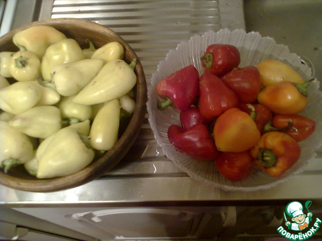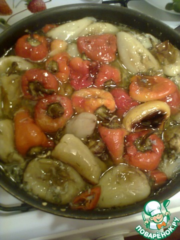 Тем временем уже перчики спеклись. Достаем их из духовки. |