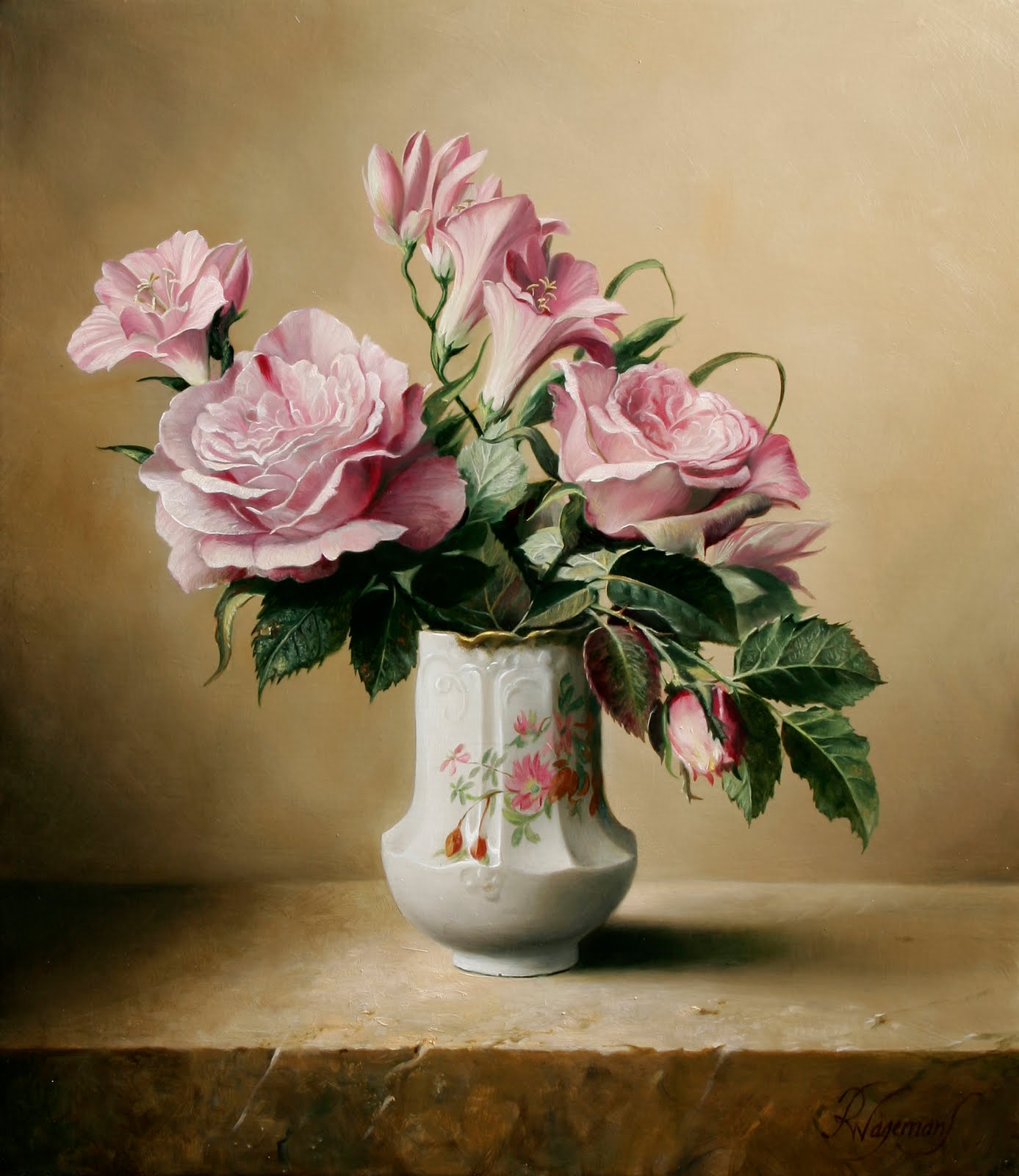 Иногда уходит целый день на каждый цветок, а иногда только несколько часов. Часто цветочные композиции никогда и не существовали в действительности, потому что цветы были нарисованы один за другим в течение долгих недель.