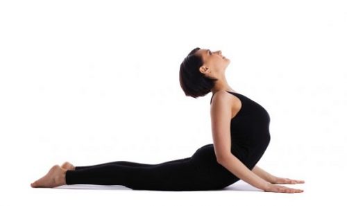 Лягте на спину, расположите ладони под плечами. Вдохните и приподнимите корпус, выпрямите руки. Затем прогнитесь в пояснице и грудном отделе. Вытяните шею. Задержитесь в таком положении, затем медленно опуститесь вниз.