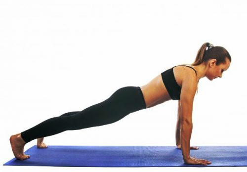 Примите упор лежа. Ладони держите под плечами. Туловище, ягодицы и ноги должны образовывать одну прямую линию. Таз не опускайте и не прогибайтесь в пояснице. Напрягите пресс. Стойте столько, сколько сможете.
