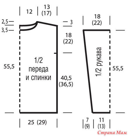 Îäíîâðåìåííî ïðèáàâèòü äëÿ ñêîñà ðóêàâà ñ îáåèõ ñòîðîí â êàæäîì 10-ì ðÿäó îò íà÷àëüíîãî ðÿäà 11 x 1 ï. (â êàæäîì 8-ì ðÿäó 14 x 1 ï.) = 59 (71) ï. Âñå ïðèáàâëåííûå ïåòëè âêëþ÷èòü â èçíàíî÷íóþ ãëàäü.