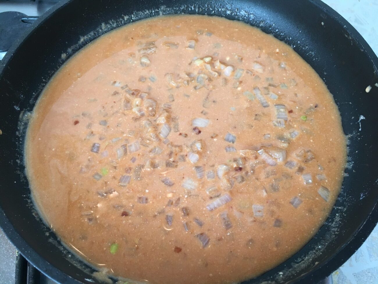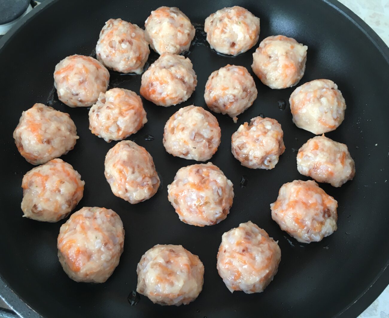 Куриные фрикадельки с гречкой и морковью, тушеные в подливе из сметаны и кетчупа
