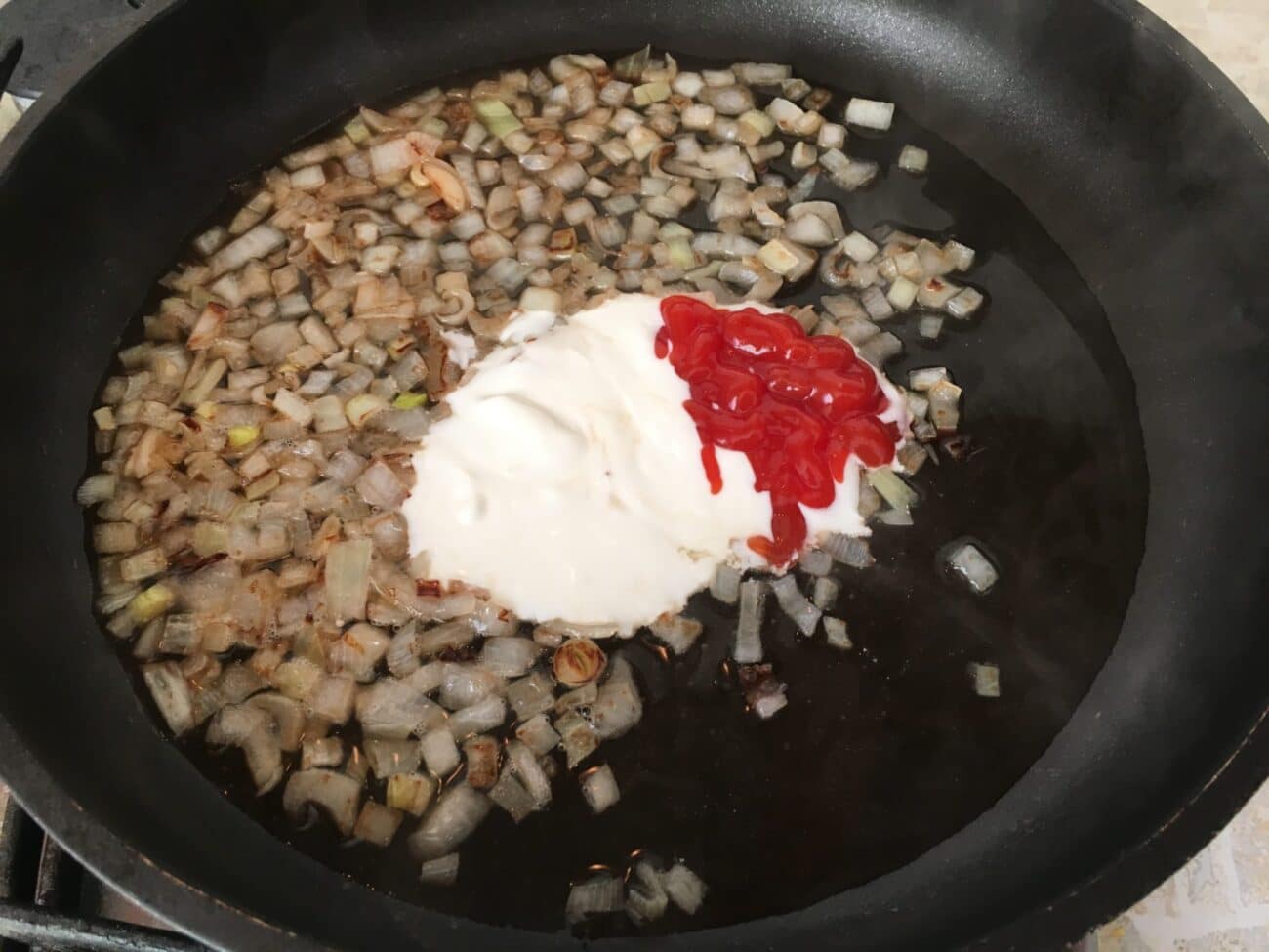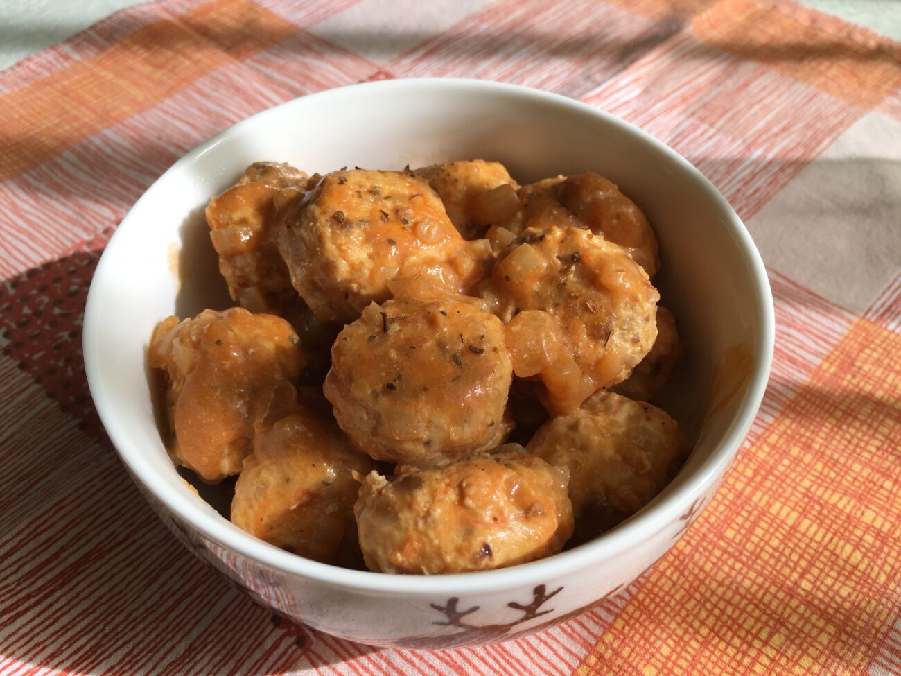 Фрикадельки – обжаренные куриные шарики, тушенные в соусе из сметаны и кетчупа. Подается как самостоятельное блюдо из фарша или сочетается с любым гарниром