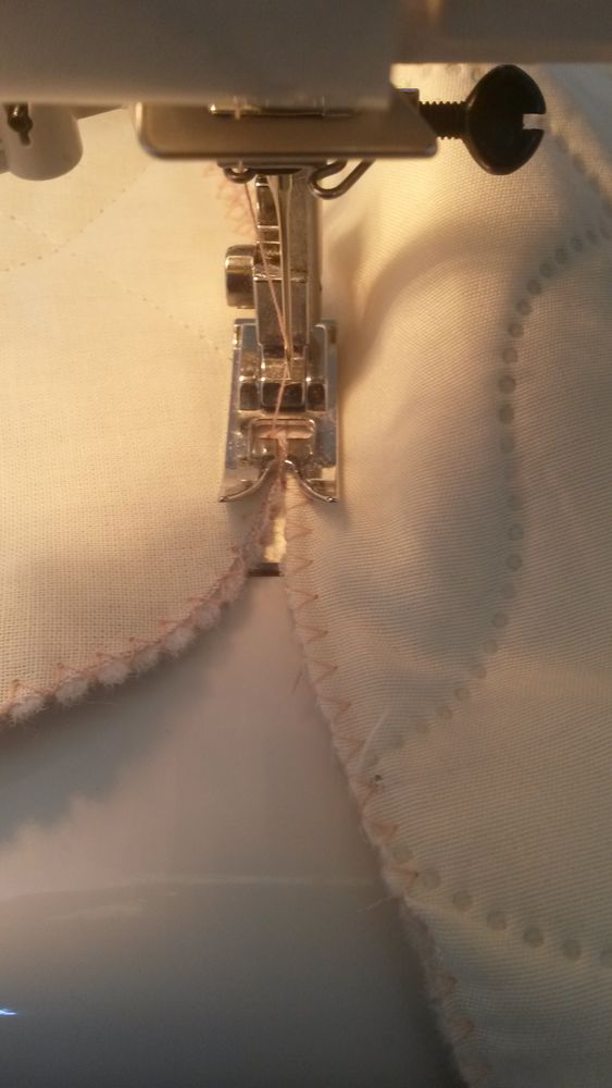 Когда уплотнитель и подкладка сшиты, их нужно собрать вместе и аккуратно сметать.