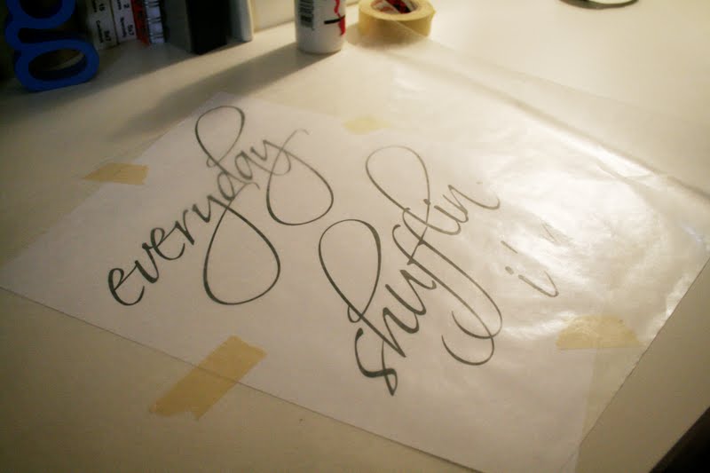 Дальше самое интересное! Для основы автор использует холст. А вот как она переносит буквы, я так толком и не поняла. Можно просто натянуть на холст пленку с надписью, но на фотографиях буквы прямо на холсте. Значит их переносили по одной буковке и приклеивали на холст?