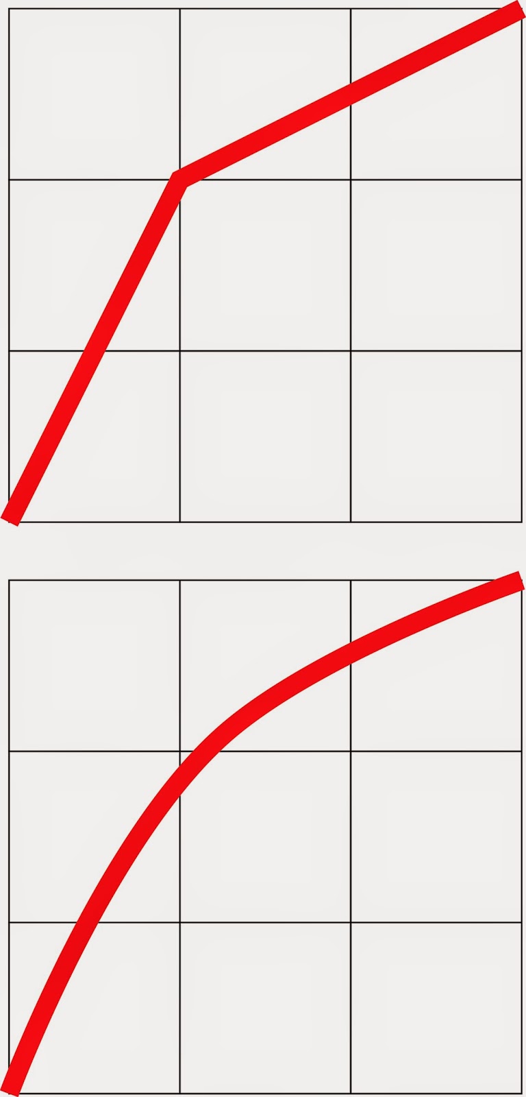 то необходимо мысленно разделить ряды, отведенные на убавки, на три и приблизительно треть убавляемых петель убавить за 2/3 высоты, а 2/3 петель - за 1/3 всех рядов, отведенных на убавки. Попробуем представить это графически: