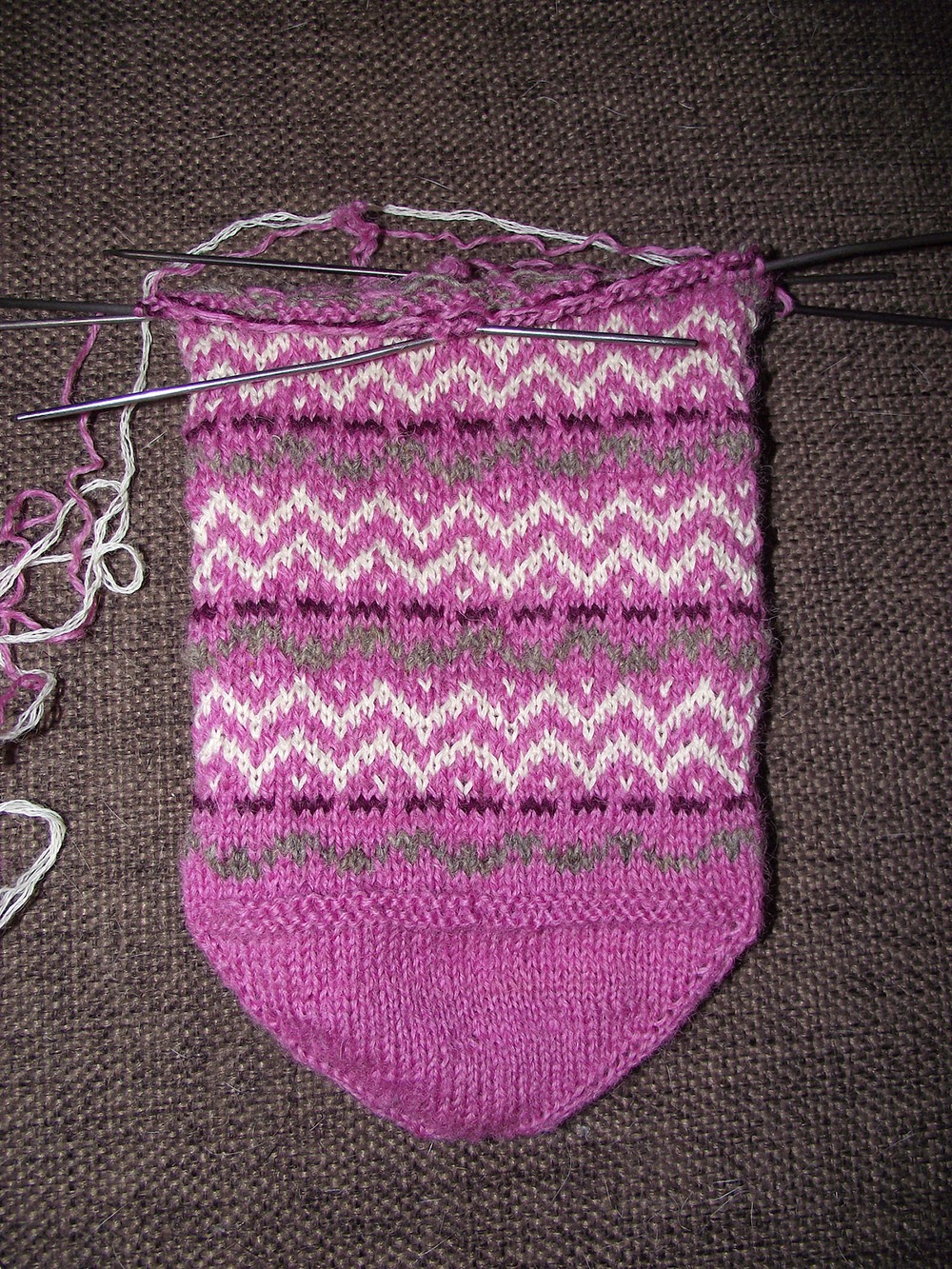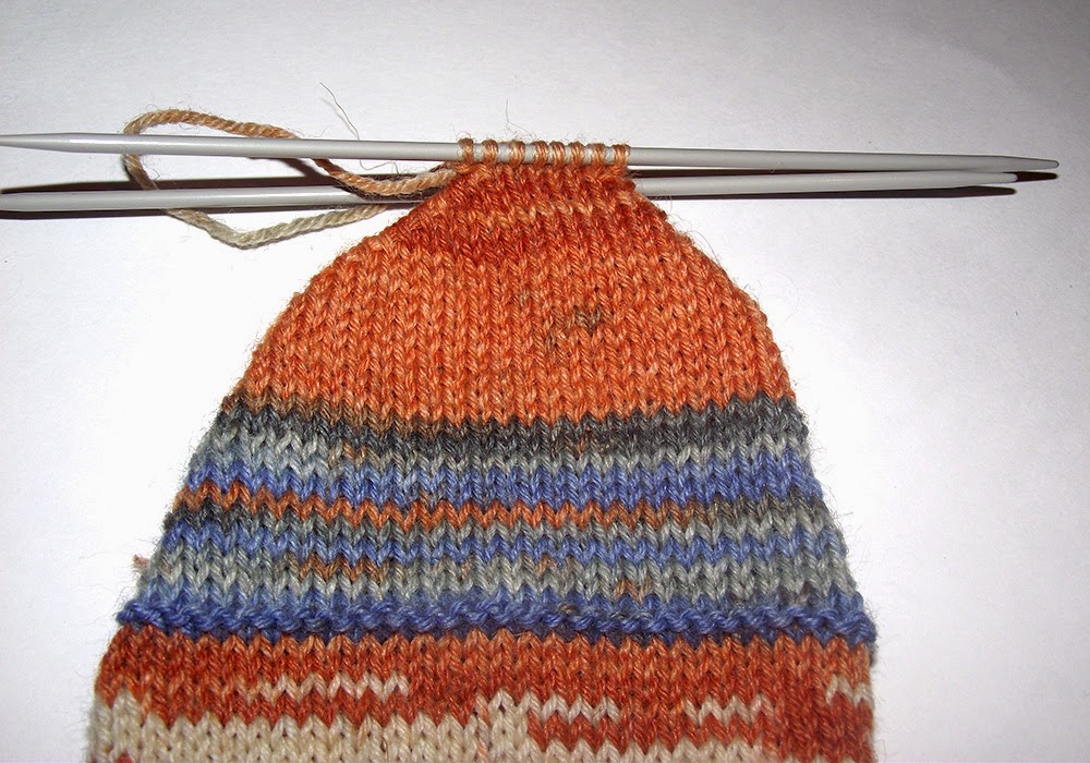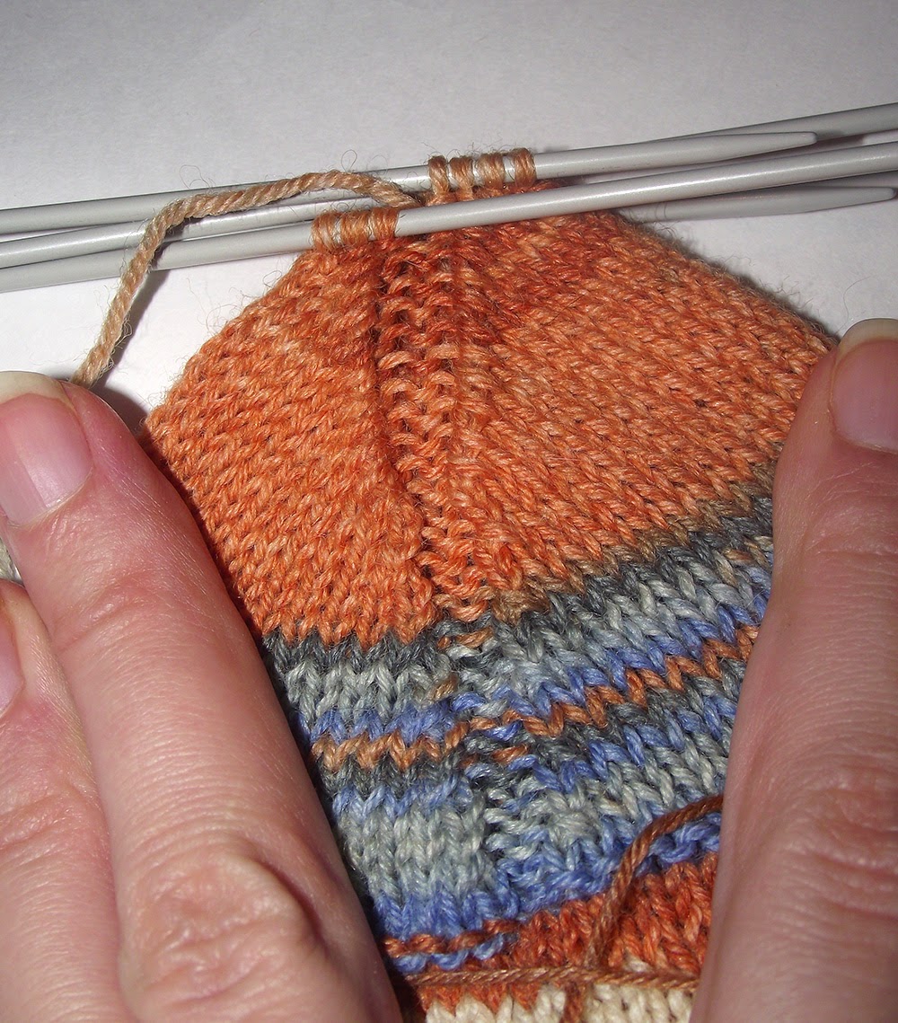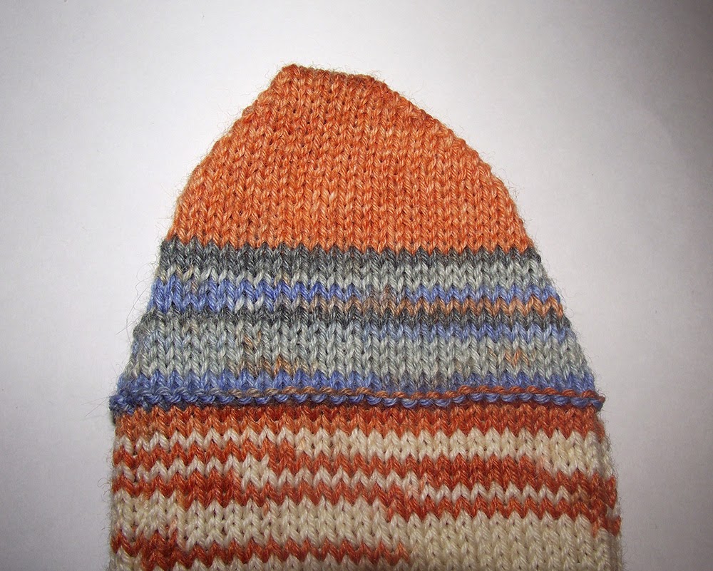 Если пряжа более тонкая и есть желание лучше посадить мысок носка по ноге - хотя бы как на этом фото