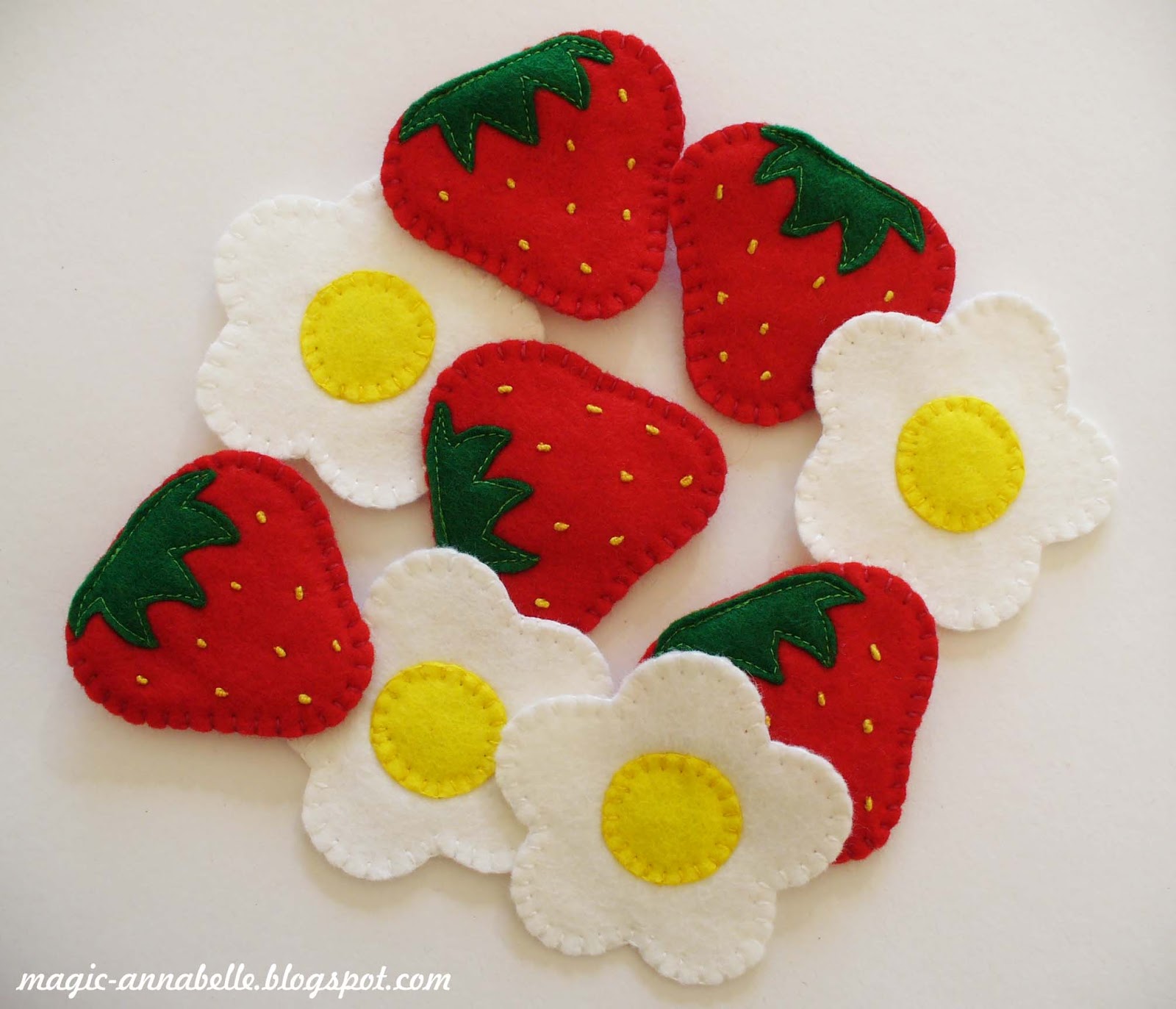 ягодки-цветочки", добавила 2 шнура с бусинами для счета. Магнитная часть кнопок крепится к ягодкам и цветочкам, они спокойно держатся, например, на холодильнике.