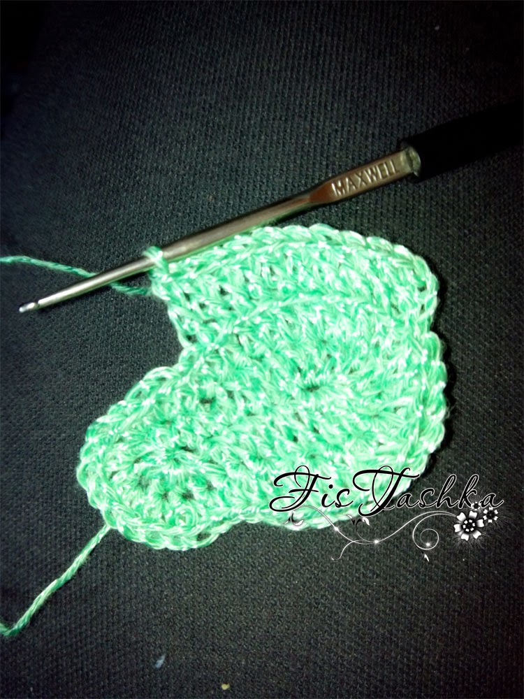 Затем обвязываем мысок - 2 СБН, пико из 2 вп., 2СБН, пико из 2 вп. и так до конца мыска.