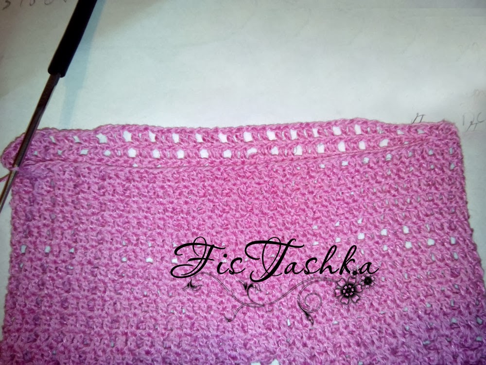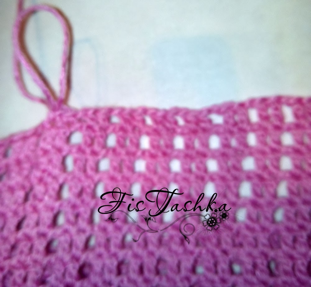 Сшиваем плечевые швы. Обвязываем проймы, горловину, боковые части полочек и низ следующим образом - 3 сбн, пико из 3-х вп, 3 сбн, пико из 3 вп и т.д.