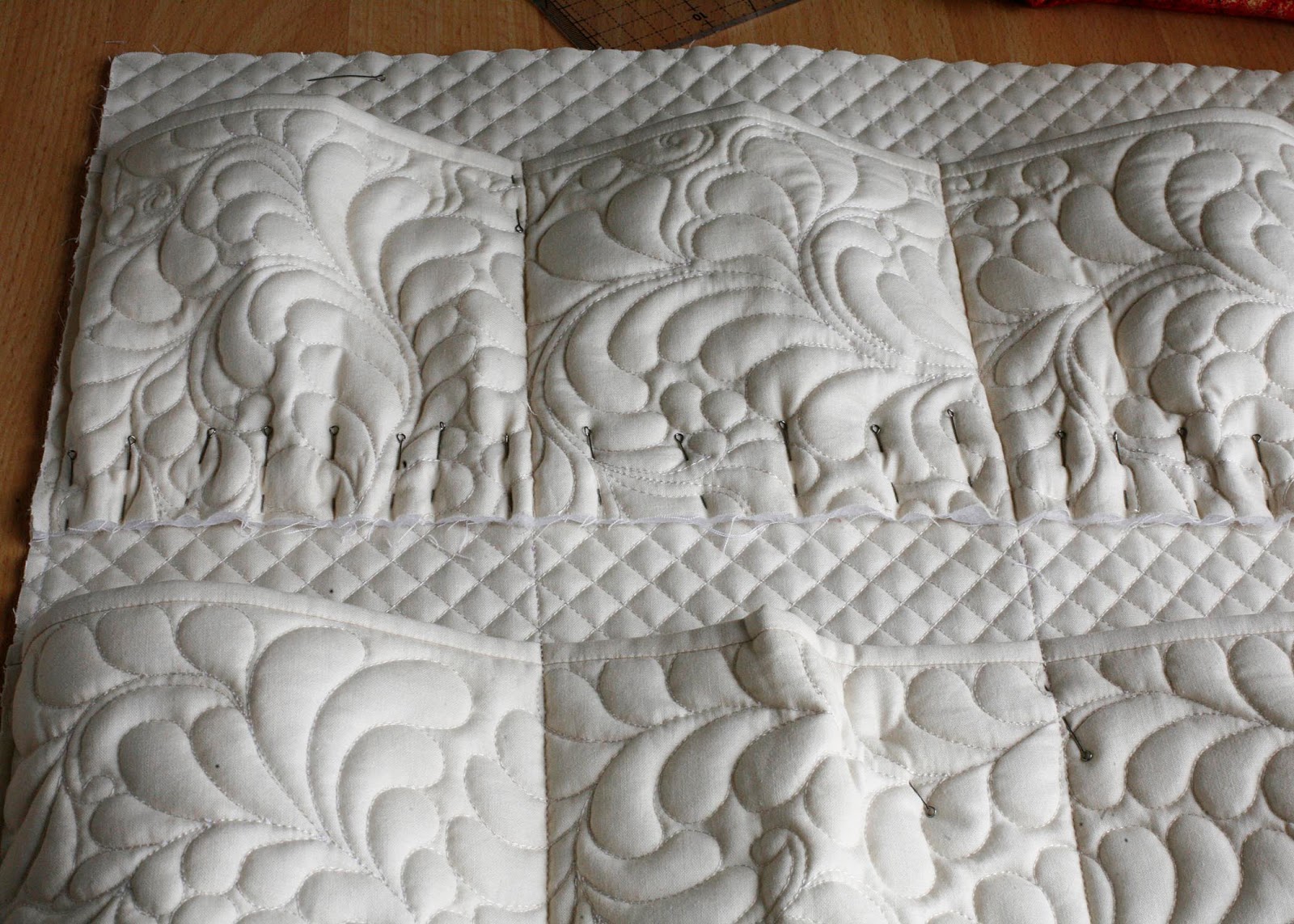 предполагаем какой должен объем быть кармашков, каждые три кармашка делаем идентичными по объему. Наносим разметку воздухорастворимым маркером (т.к. мы не предполагаем стирать кармашки после сборки)