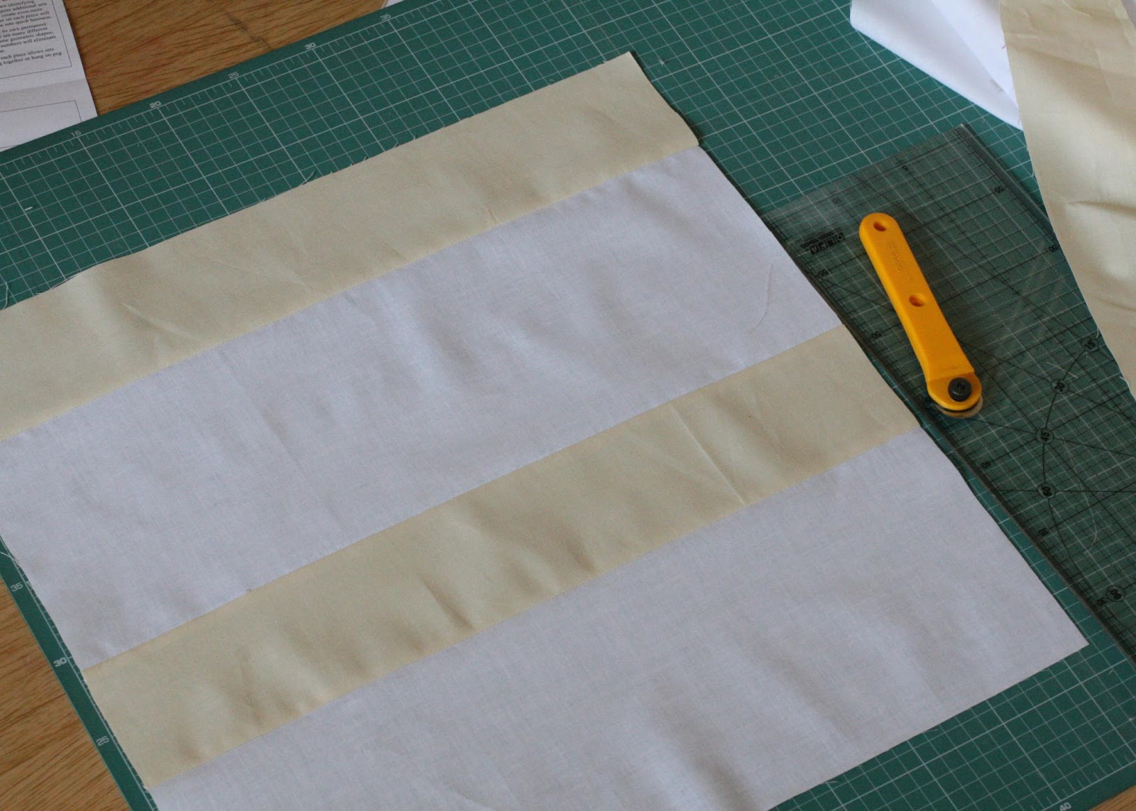2. Берем другую ткань, делаем основу. Я разделила на два цвета не потому что так надо, а потому как ткани не хватало. Но получился эффектный дизайнерский ход. Там где белое будут карманы.