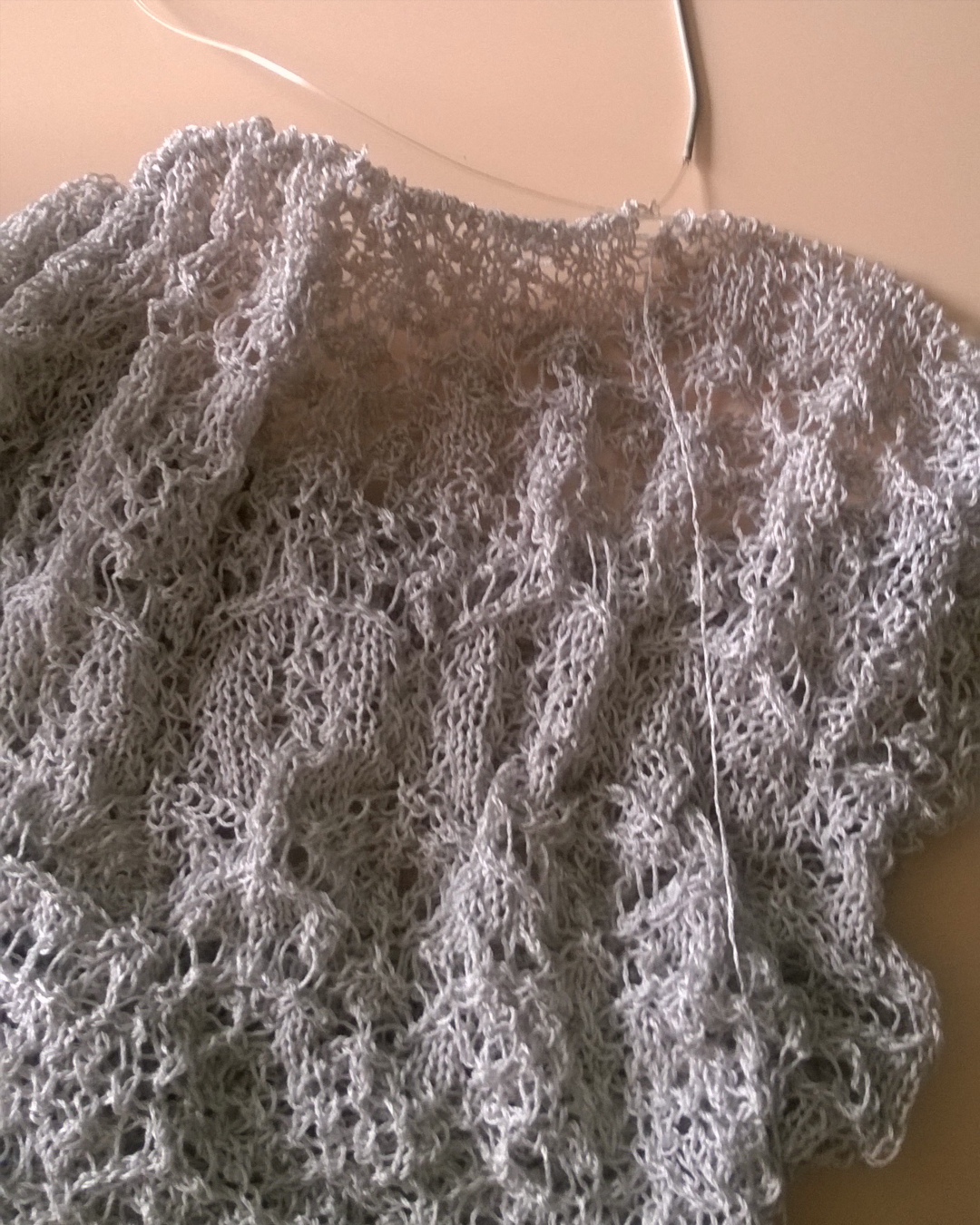 Спицы 2,5, пряжа шелк Hasegawa 500 м. в 100 гр. Расход 218 гр. Пряжа очень приятная, нежная. Без блеска.