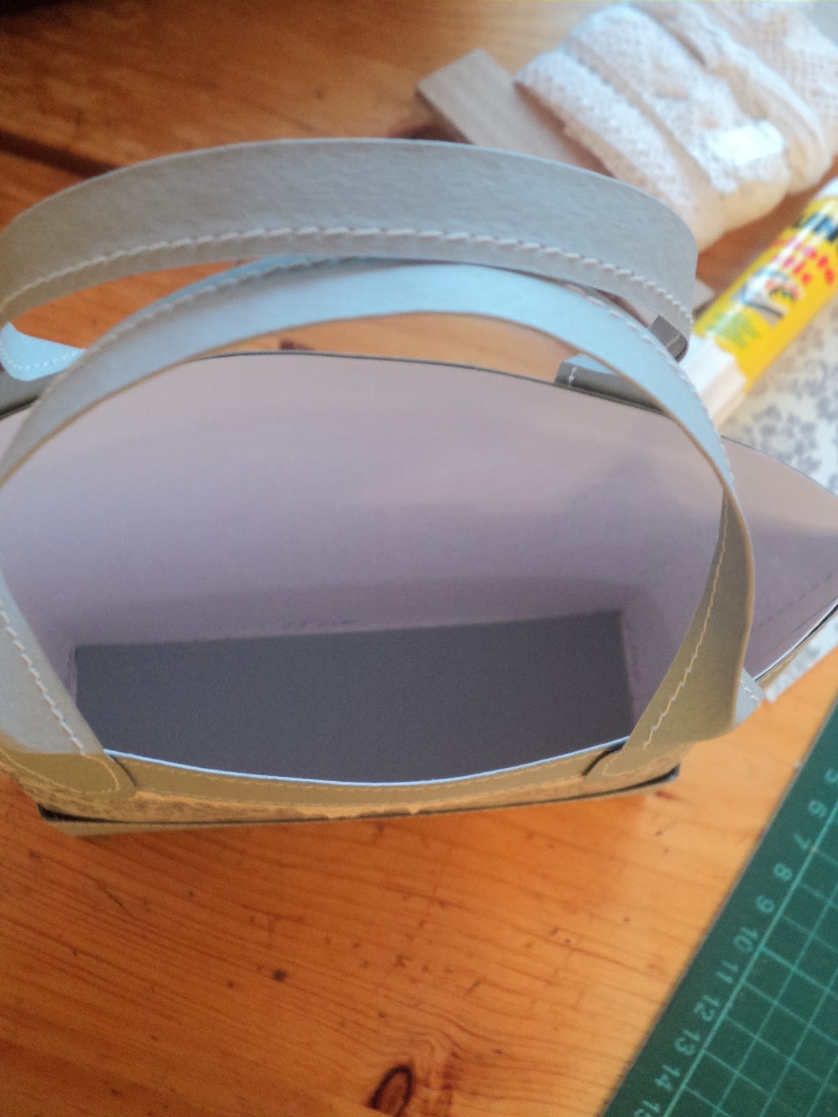 Вставляем внутрь донышко (помните, мы вырезали его? Его стороны на пару мм меньше длины и ширины дна сумочки)
