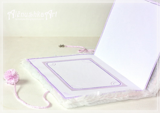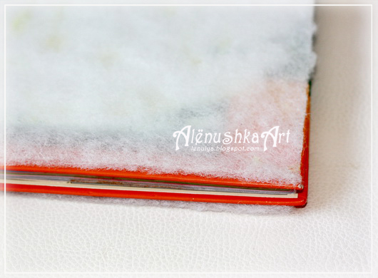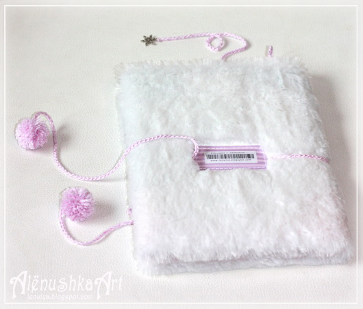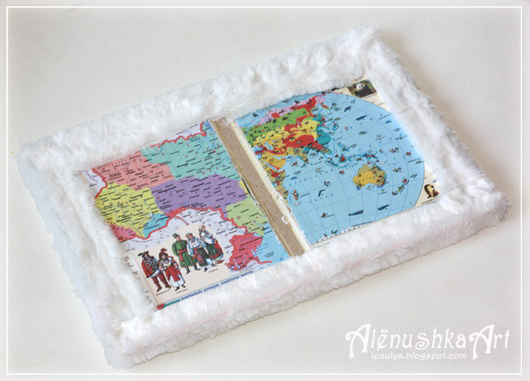 Тут все как и с тканевой обложкой. Только после того как весь мех приклеен на углах я подстригаю немного ворс, чтобы он в дальнейшем не топорщился под бумагой