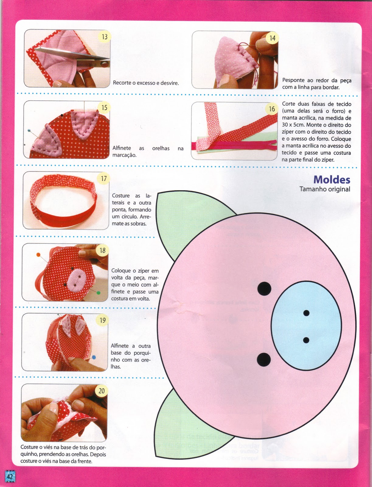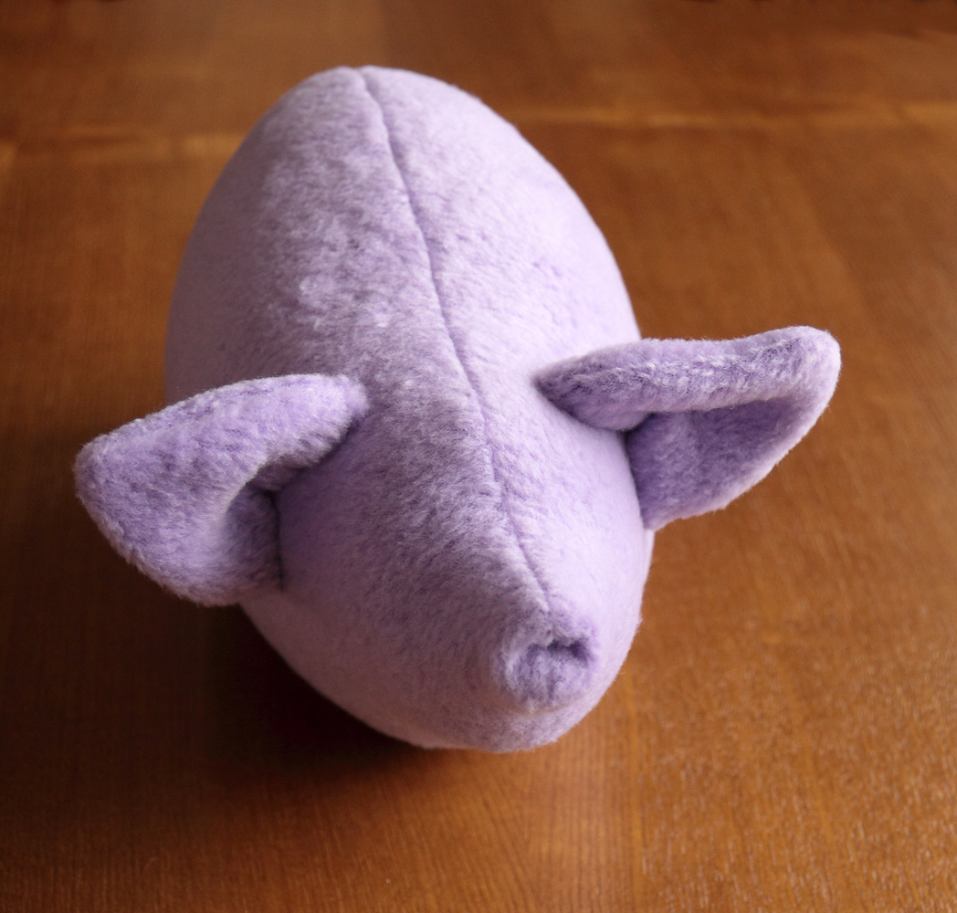 Выводить иглу при этом нужно не в центральном шве, а чуть со смещением - представьте, где у свинки должна быть дырочка в шнобеле и перенесите это на игрушку.