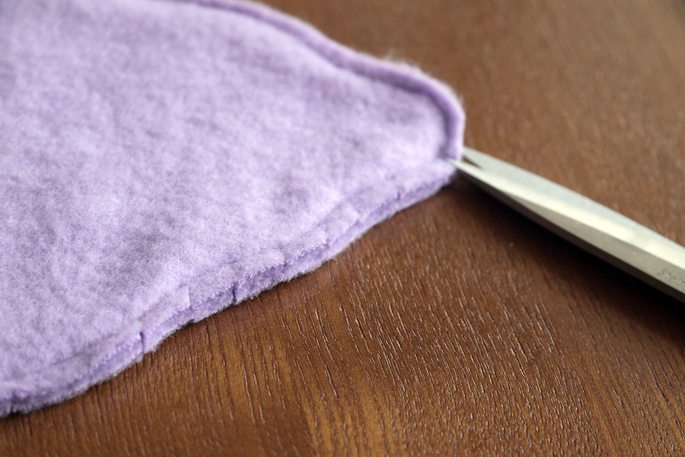 Чтобы детали лучше выворачивались и нигде не сборили, я на местах вогнутостей-выпуклостей делаю дополнительные надсечки ножницами, почти до самой строчки.