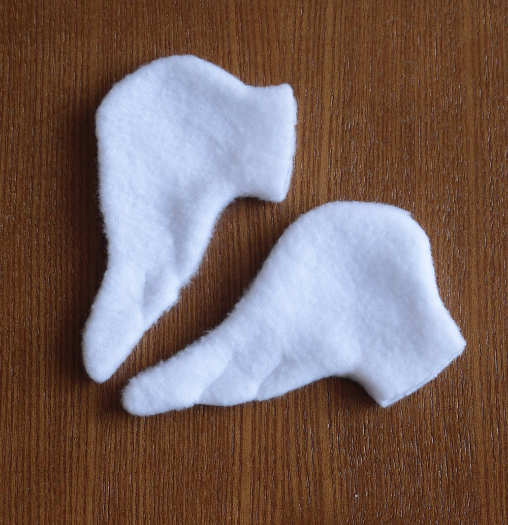 В случае с ножками можно дать себе небольшую поблажку - они всё равно будут приложены зашитым местом к телу.