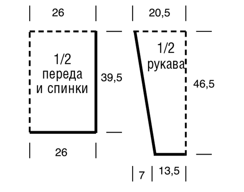 Одновременно прибавить для скоса рукава с обеих сторон в каждом 8-м ряду от начального ряда 14 x 1 п. согл. узору = 80 п.