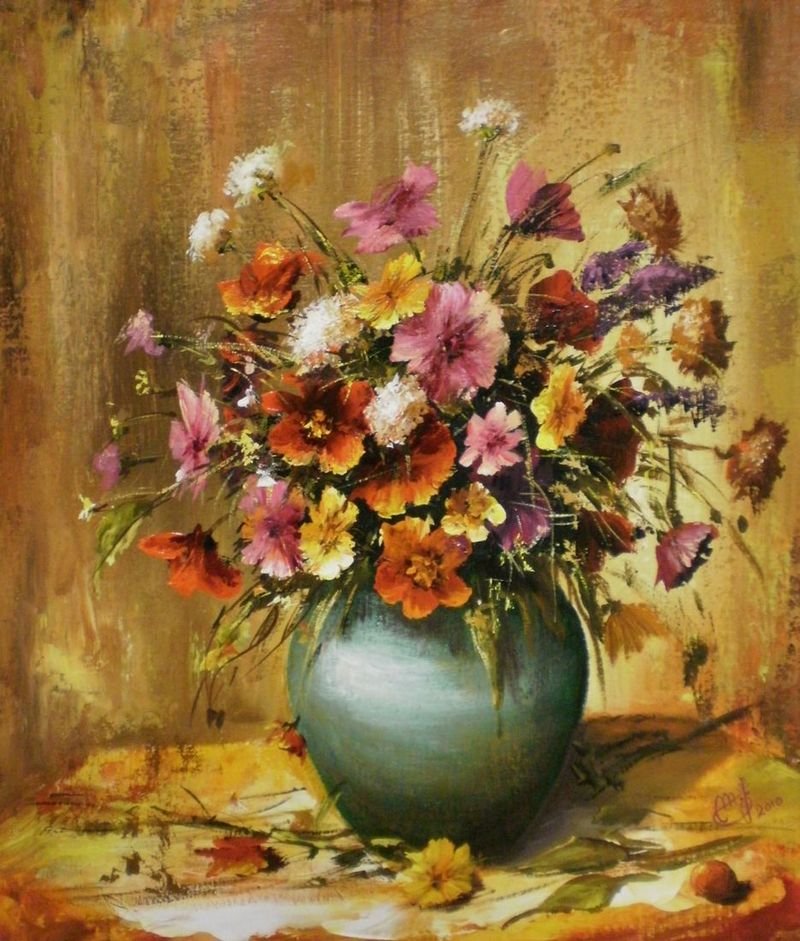 Его работы выполнены маслом на холсте.