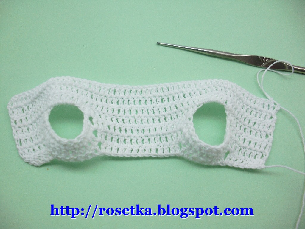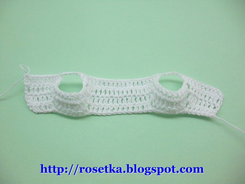 После этого вяжем до желаемой длины (у меня это три ряда) столбиками с накидом.