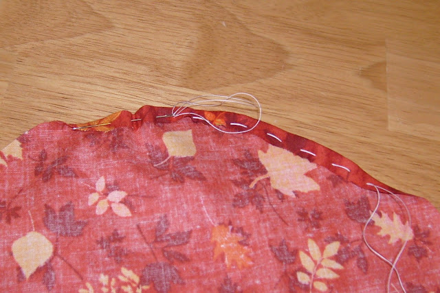 Подгибаем ткань и сметываем по кругу, придавая форму мешочка