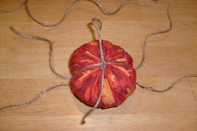 Эти тыквы сделаны в технике йо-йо и перетянуты джутовой веревкой, которая и придает тыквам форму