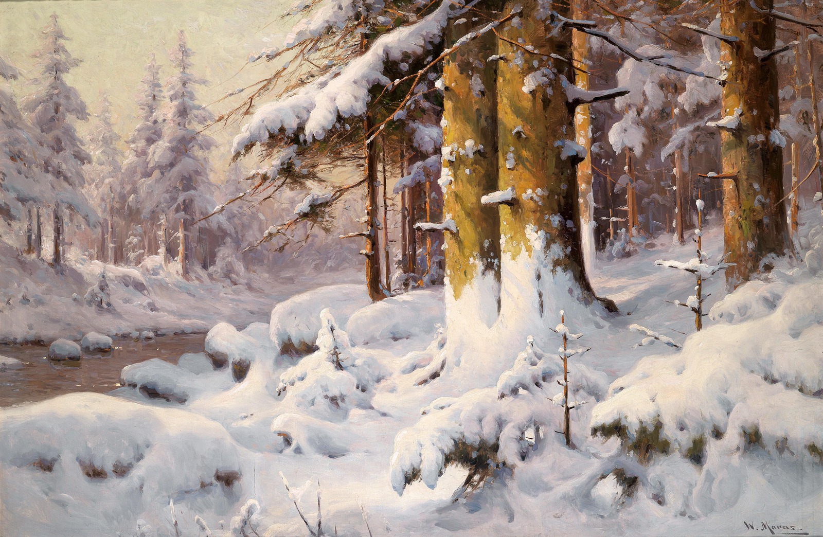 Зимний лес в солнечном свете (Winterwald im Sonnenlicht)_80 х 120_х.,м._Частное собрание