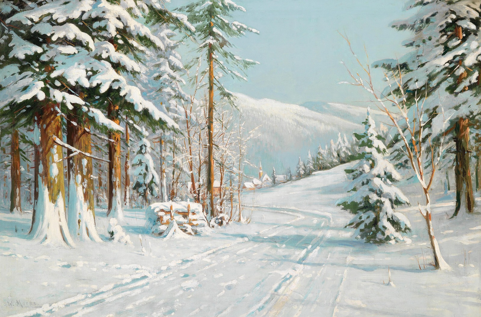 Романтичный зимний пейзаж (Romantic winter landscape)_81 х 120_х.,м._Частное собрание